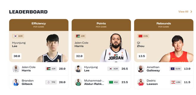 单从牌面来看,韩国篮球队并不像拥有孙兴慜、李刚仁的韩国男子足球队那样群星璀璨。