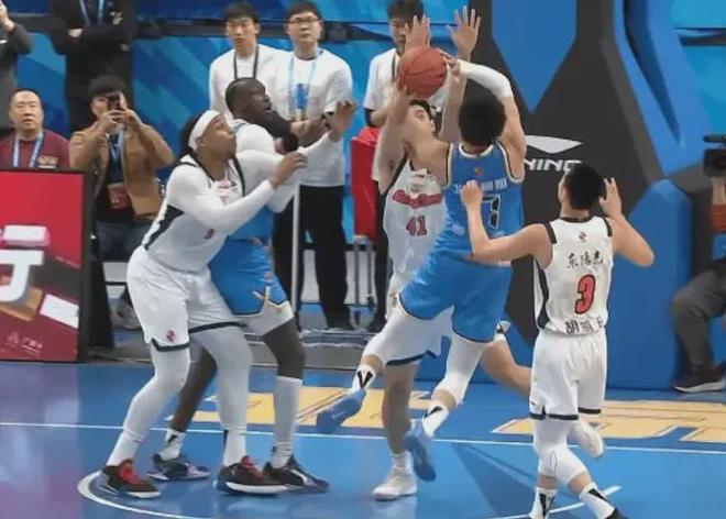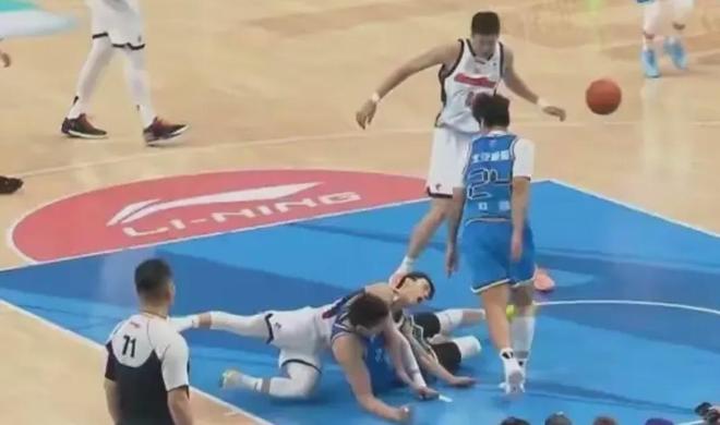 那是比赛第二节的一个回合,当时萨姆纳跟周琦出现了一次对抗,周琦失了重心,摔倒碰到徐杰。