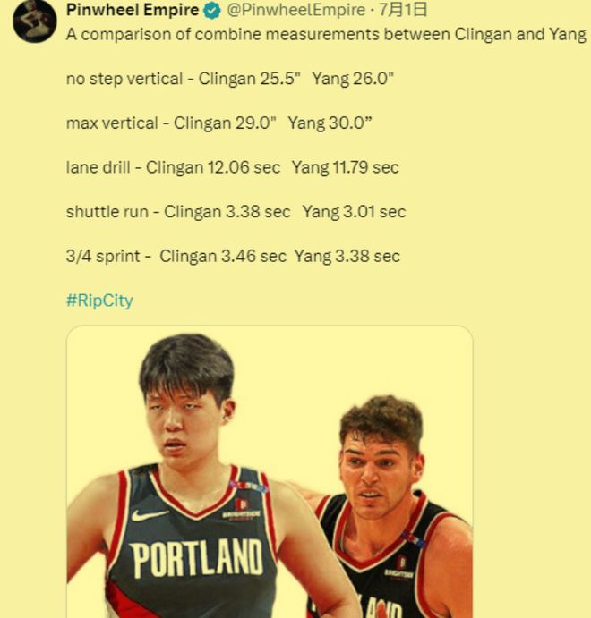 据悉,在队内训练中,杨瀚森每次对位克林根都占尽优势,因为他进攻手段多,而克林根是一个偏防守型的蓝领球员。而且,杨瀚森的静态天赋也全面碾压克林根,无论是原地垂直起跳、助跑最大垂直弹跳、敏捷度测试、折返跑和3/4场冲刺,都比对方优秀。