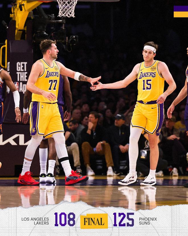 末节决战,詹姆斯继续上场带队追分,但是吉莱斯皮连中4记三分球,太阳领先25分得以牢牢锁定大局。距离终场仅剩5分44秒之际,雷迪克换下全部主力,选择提前弃子认负,比赛就此失去了悬念。克内克特连中远投,但为时已晚。最终,湖人以108比125完败于对手。