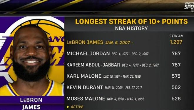 连续1297场得分上双!明明无人可破的纪录,为何老詹还要继续刷新
