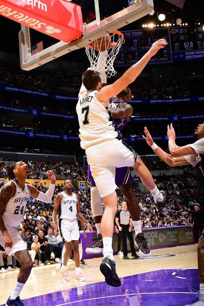尽管球队失利,但詹姆斯个人的竞技状态却绽放出耀眼的光芒。过去两场比赛,他场均贡献24分,而且还有非常炸裂的隔扣和提升士气加拯救回合的追帽。对于一个处于生涯第23个赛季、即将年满41岁的老将而言,这样的身体表现几乎违背了运动规律。连马刺随队记者都感叹亲眼见证其扣篮时,都表示第一次现场看詹姆斯海报扣篮,难以置信“他还能这样飞”。詹姆斯在这场比赛还被恶犯不止一次,一次是勾脚,一次是打头。但他依然毫无保留地投入竞争,这份对身体极限的挑战与对比赛纯粹的热爱,超越了胜负本身。