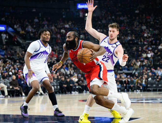 小卡45+7末节20分快船大胜爵士夺6连胜哈登20+7李凯尔22+8