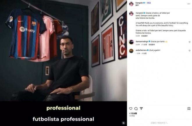 布斯克茨在社媒动情写道:“衷心感谢大家,感谢足球带来的一切。你们永远都是这段美好故事的一部分。”