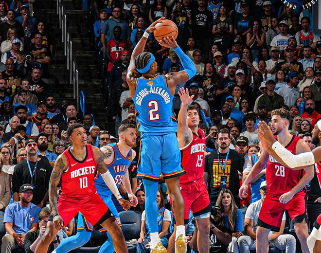 NBA常规赛赛程过半,西部竞争着实有趣。第二到第四名的马刺+掘金+森林狼抱团,自打约基奇受伤倒下后,掘金甚至逐渐追上了马刺,而森林狼也在湖人和火箭下滑时,悄咪咪跟上第二集团;湖人和火箭这对难兄难弟,一个没防守,一个没组织;一个非常擅长打关键时刻,但很多比赛都被大比分打花。另一个不擅长打关键时刻,但也能保持6成胜率,确实很奇怪。但是唯一不变的是雷霆,开赛前41场比赛,赢下34场,领先第二名马刺6.5个胜场。美媒《BR》给出预测:雷霆本赛季锁定西部第一的概率是99.4%。