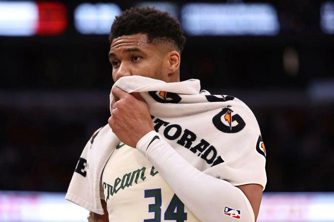 值得注意的一幕发生在第四节,当时比赛已经失去悬念,字母哥被换下场,然后他坐在替补席用毛巾擦脸,随后又摇了摇头。