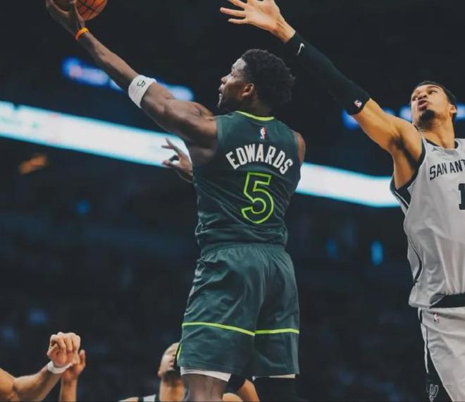 森林狼在最后2分钟完成反超,爱德华兹持球突破到内线,单挑文班亚马,一个抛投打进,让森林狼以104比103领先马刺,留下16.8秒。
