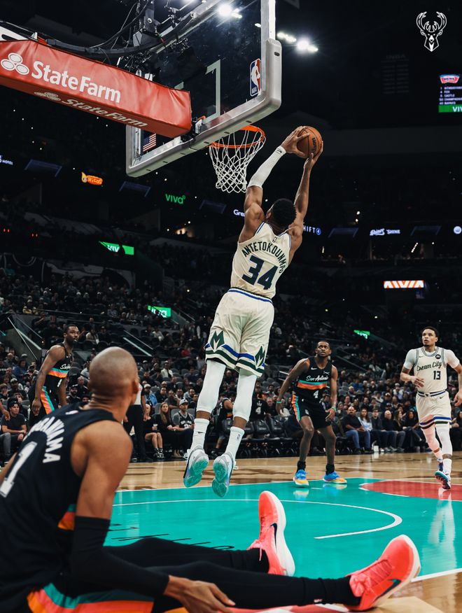 次节开场雄鹿打出一波7-0反超马刺,文班亚马立马连拿4分,随后文班亚马连续命中两个三分球,单节11分6篮板1盖帽帮助马刺打出小高潮,半场打完马刺已经三人上双。扬尼斯次节只拿到2分,半场16分3篮板。