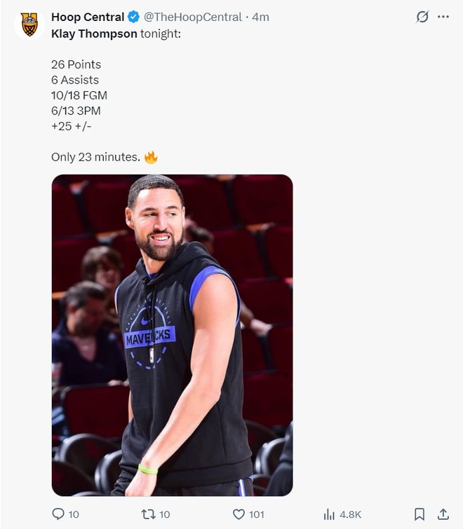 这场比赛克莱还创造五项赛季新高:得分、助攻、运动战进球、三分命中数、正负值,这位35岁的老将里程碑之夜太闪耀了。