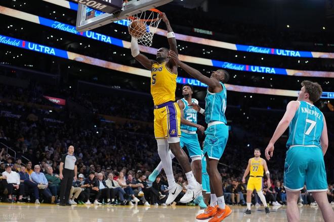 湖人坐镇主场迎战黄蜂,湖人先发:詹姆斯、拉拉维亚、艾顿、斯玛特、东契奇! 黄蜂先发:克尼佩尔、布里奇斯、迪亚巴特、米勒、鲍尔!