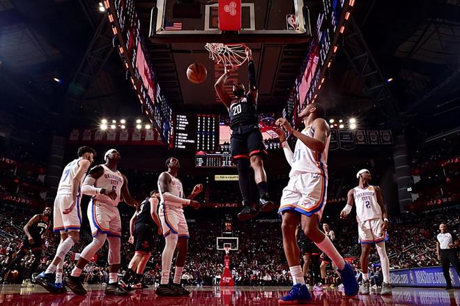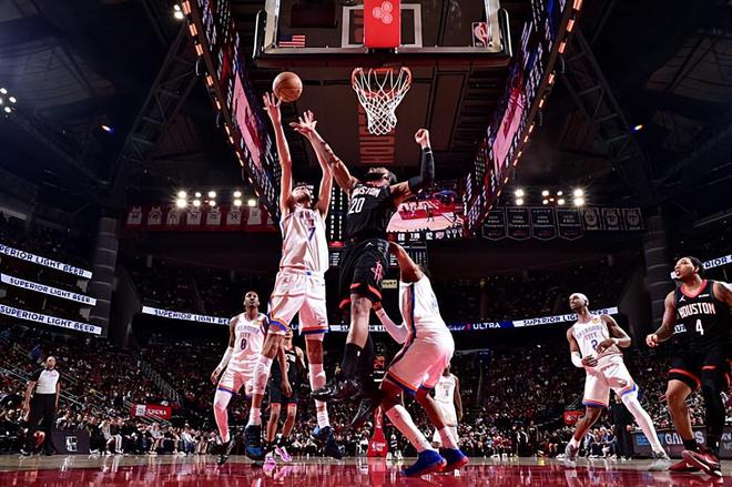 本场比赛中,虽然火箭遭遇了一场惨败,但是球队的先发得分后卫约什-奥科吉(Josh Okogie)也算是起到了一定的作用,只是作用也确实是不太明显的。奥科吉全场出场22分钟,投篮6中2,三分线外3中1,得到了5分5篮板1助攻2抢断1盖帽的数据,其中还包括了3个前场篮板,还有2次失误和1次犯规,正负值为-10。奥科吉在防守端的表现还是相当不错的,展现出了相当不错的个人防守能力,防守态度积极,并且起到了很好的效果。谢伊-吉尔杰斯-亚历山大(Shai Gilgeous-Alexander)在本场比赛中没有办法完全发挥出自己的得分能力,也和奥科吉在防守端的出色表现密切相关。当然了,奥科吉在进攻端的表现也是差了一些的,确实是没有起到更大的作用,他的得分能力与进攻贡献度确实是差了一些的。