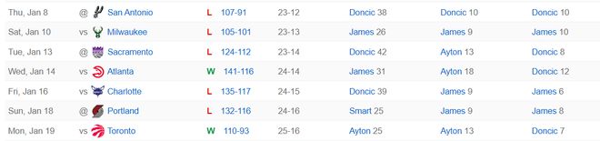 湖人队过去的7场比赛只赢下其中的两场,而且过去的7天时间里湖人队打了5场比赛,这已经是NBA7天时间最多的场次,可作为41岁的詹姆斯打满五场,东契奇都只打了4场,这五场比赛詹姆斯场均32.5分钟,拿到25.2分7篮板6.8助攻1抢断1.2盖帽,命中率50.6%,三分命中率36.4%,他真的已经很努力。