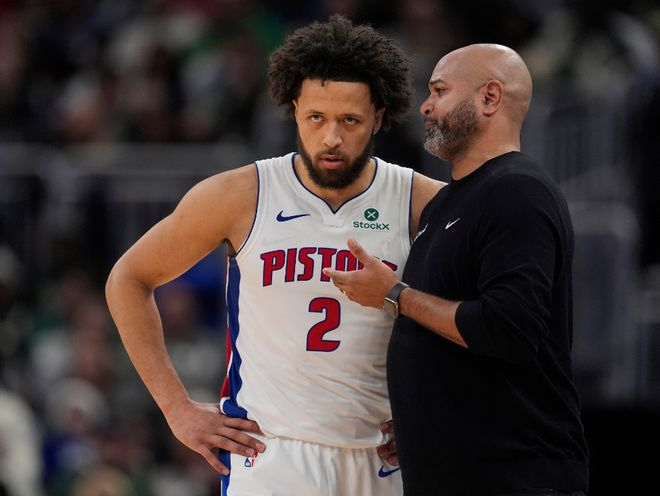 活塞这边,打出生涯最佳赛季的康宁汉姆本赛季场均可以贡献25.9分6个篮板9.6次助攻,内线支柱杜伦场均17.8分10.8个篮板,哈里斯场均13.3分,邓罗场均12.1分,奥萨尔场均10.9分5.8个篮板,斯图尔特场均10.2分5.6个篮板。