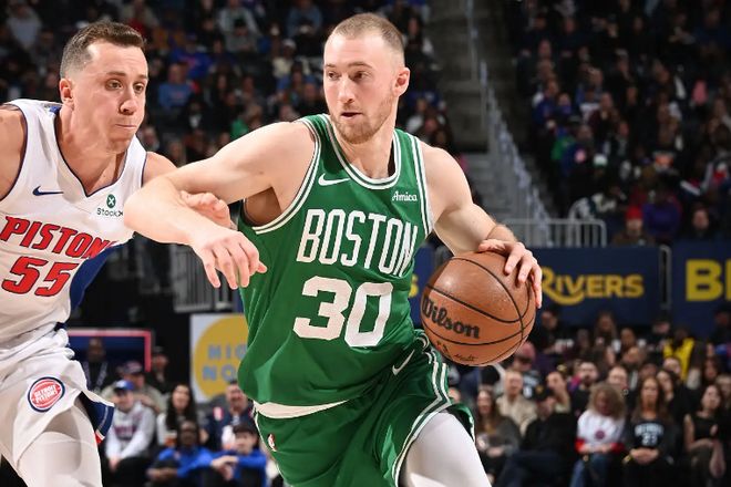 本场比赛中,凯尔特人虽然输掉了比赛,但是球队的先发侧翼大将萨姆-豪瑟(Sam Hauser)的表现还是值得肯定的,他也是延续了前一场对阵亚特兰大老鹰比赛中的出色手感。豪瑟全场出场27分20秒,投篮9中6,三分线外7中4,得到了16分5篮板1助攻的数据,还有4次犯规,正负值为+2。豪瑟在进攻端的效率相当不错,他又一次将自己在外线投篮方面的特点发挥了出来,他也是抓住了有限的出手机会并且得到了不少分数,起到了很好的效果。豪瑟在其他方面的表现也还是中规中矩,在防守端也没有出现太大的问题。豪瑟在本场比赛中算是很好地扮演了投手的角色,如果他能够得到更多的球权和更多的出手机会,很显然他的数据和表现还能够更上一层台阶。