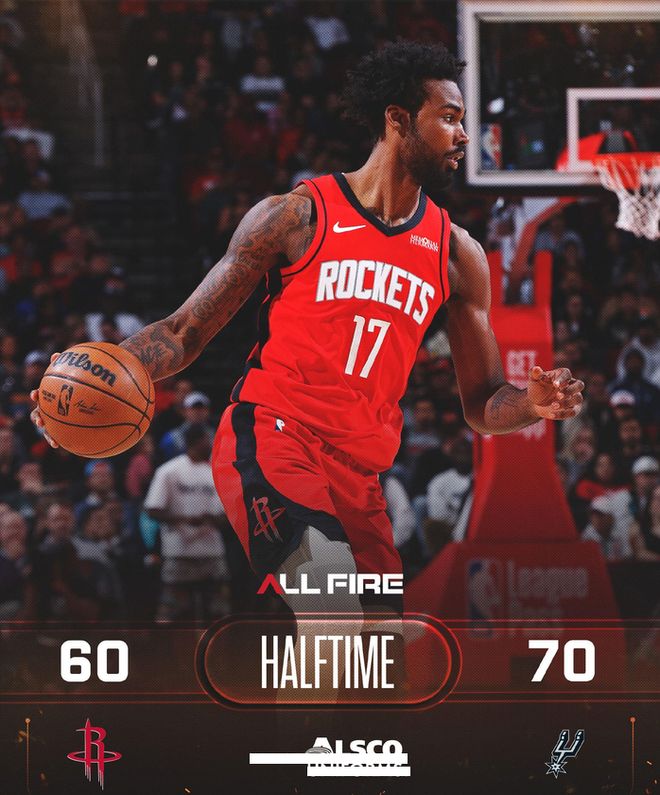 次节回来,文班亚马无视防守隔扣卡佩拉,接着底线接球,迎着杜兰特直接干拔命中,马刺领先到13分。文班胳膊被打出血印,下场让队医处理,真是没有哨。伊森后仰跳投艰难打进,卡斯尔失误被抢断,小史密斯反击送出单臂滑翔暴扣,火箭追到10分,打停马刺。巴恩斯45度三分抬手还有,马刺目前三分19投10中(命中率高达53%),申京三分投进后再造犯规,半场战罢,火箭60-70落后马刺。