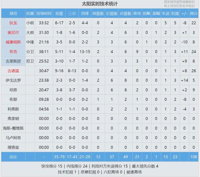古德温替补出战31分钟,投篮16中9,三分13中8,砍下26分4篮板。值得一提的是,本场雷霆所有替补加起来只得到23分。单场26分,打破古德温生涯得分纪录!2025年7月21日,为了签下斯玛特,湖人裁掉古德温,太阳将其签下!