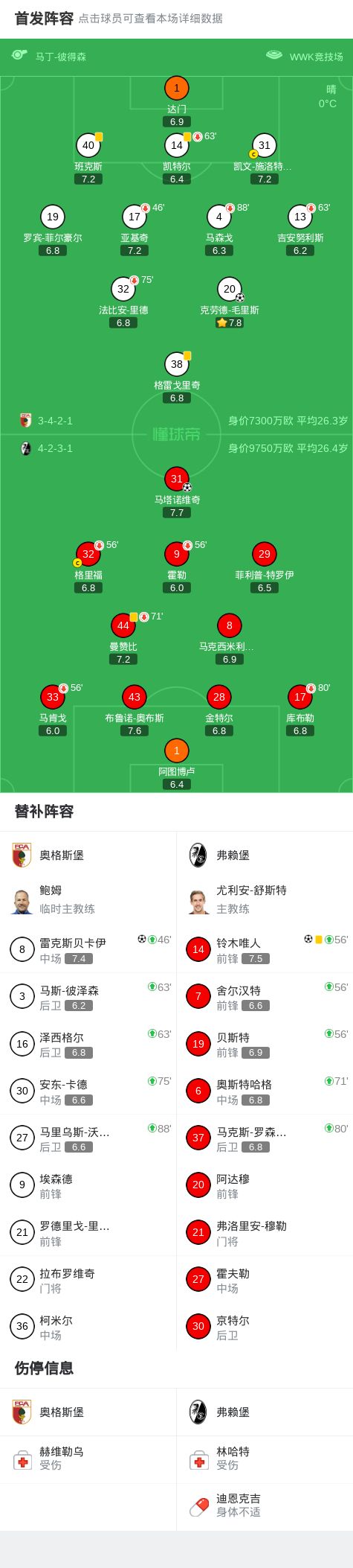 奥格斯堡22弗赖堡,克劳德毛里斯先拔头筹,马塔诺维奇救主