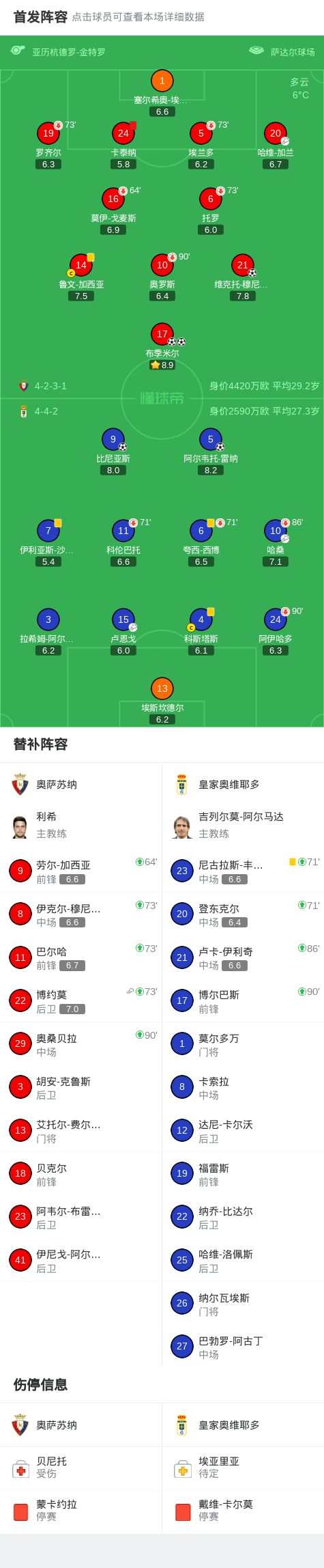 第75分钟,奥萨苏纳球员博约莫助攻布季米尔打入一球。