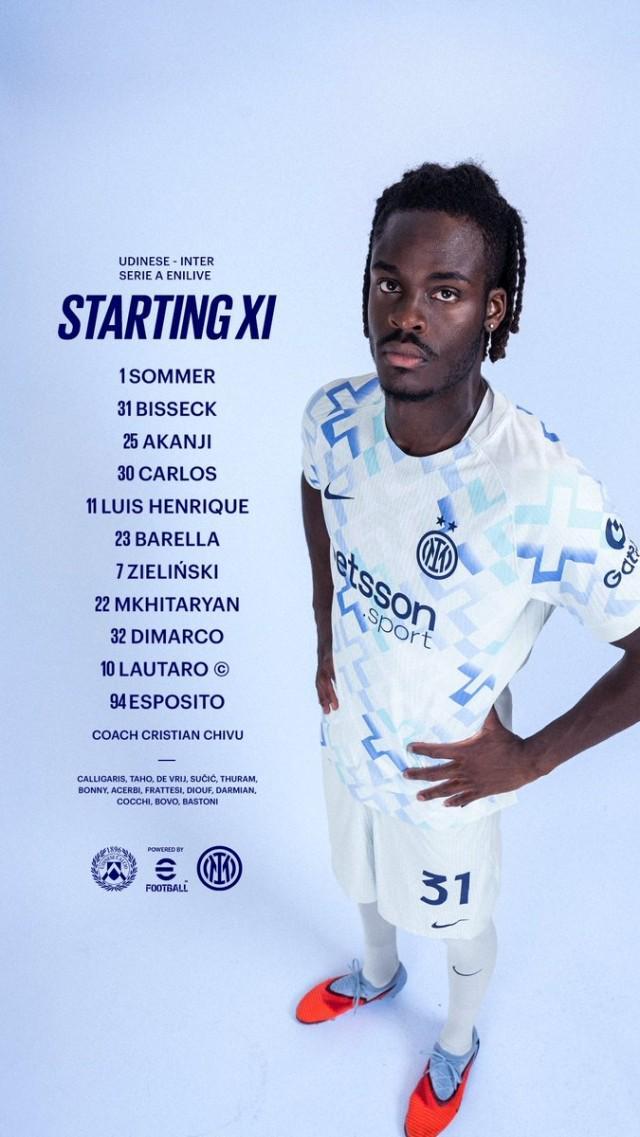 意甲第21轮,国际米兰客战乌迪内斯,赛前国际米兰首发阵容已经出炉,具体名单如下: 国际米兰首发:佐默 / 比塞克、阿坎吉、卡洛斯·奥古斯托 / 路易斯·恩里克、巴雷拉、杰林斯基、姆希塔良、迪马尔科 / 劳塔罗、皮奥·埃斯波西托