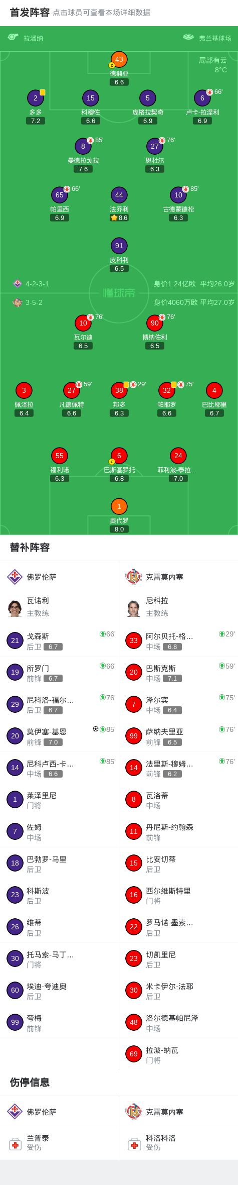 联赛第二胜!佛罗伦萨10克雷莫内塞暂升到第18名,基恩绝杀