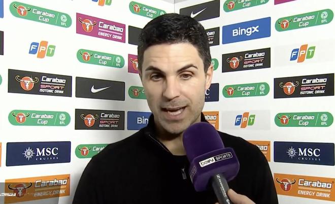 英联杯半决赛首回合,阿森纳客场3-2击败切尔西,赛后,枪手主帅阿尔特塔接受了拜因体育的采访。