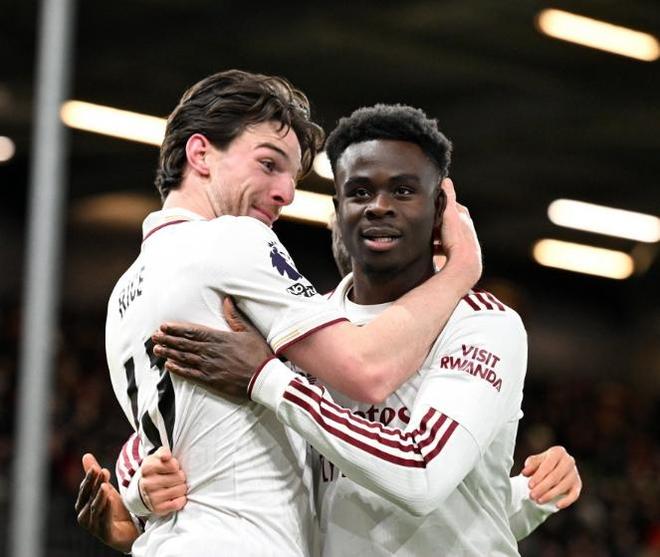 易边再战,阿森纳在第54分钟反超比分,厄德高禁区内拿球后,回做给了中路跟进的赖斯,后者迎球怒射,将比分改写为了2-1,第71分钟阿森纳用几乎同样的套路再次取得进球,萨卡右路倒三角传中,赖斯推射将领先的优势扩大到了3-1,这也是赖斯继欧冠对阵皇马后,第二次为阿森纳单场比赛打进2粒进球。